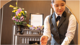 アテンダント(葬祭)心配りで支える、静かな信頼のしごと。はじめの役割(新人・一般社員)式場の準備や接遇、ご案内など、お客様と最も近い場所で、丁寧な対応を積み重ねていきます。信頼を重ねて広がる役割