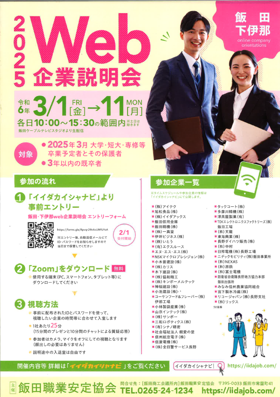 - 2025飯田・下伊那WEB企業説明会開催のお知らせです